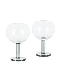 Set of two mouth-blown glasses in black. Logo engraved at base. Suitable for cold liquids. Dishwasher safe. H6 x W4 x D4 in Supplier color: Clear/Smoke