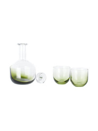 Mouth-blown glass decanter and tumbler set. Features green-to-transparent gradient. - Glass stopper - Logo etched at base - Hand wash - Decanter: H9 x D5 - Tumbler: H3.5 x D3 Part of the Tank collection. Supplier color: Green
