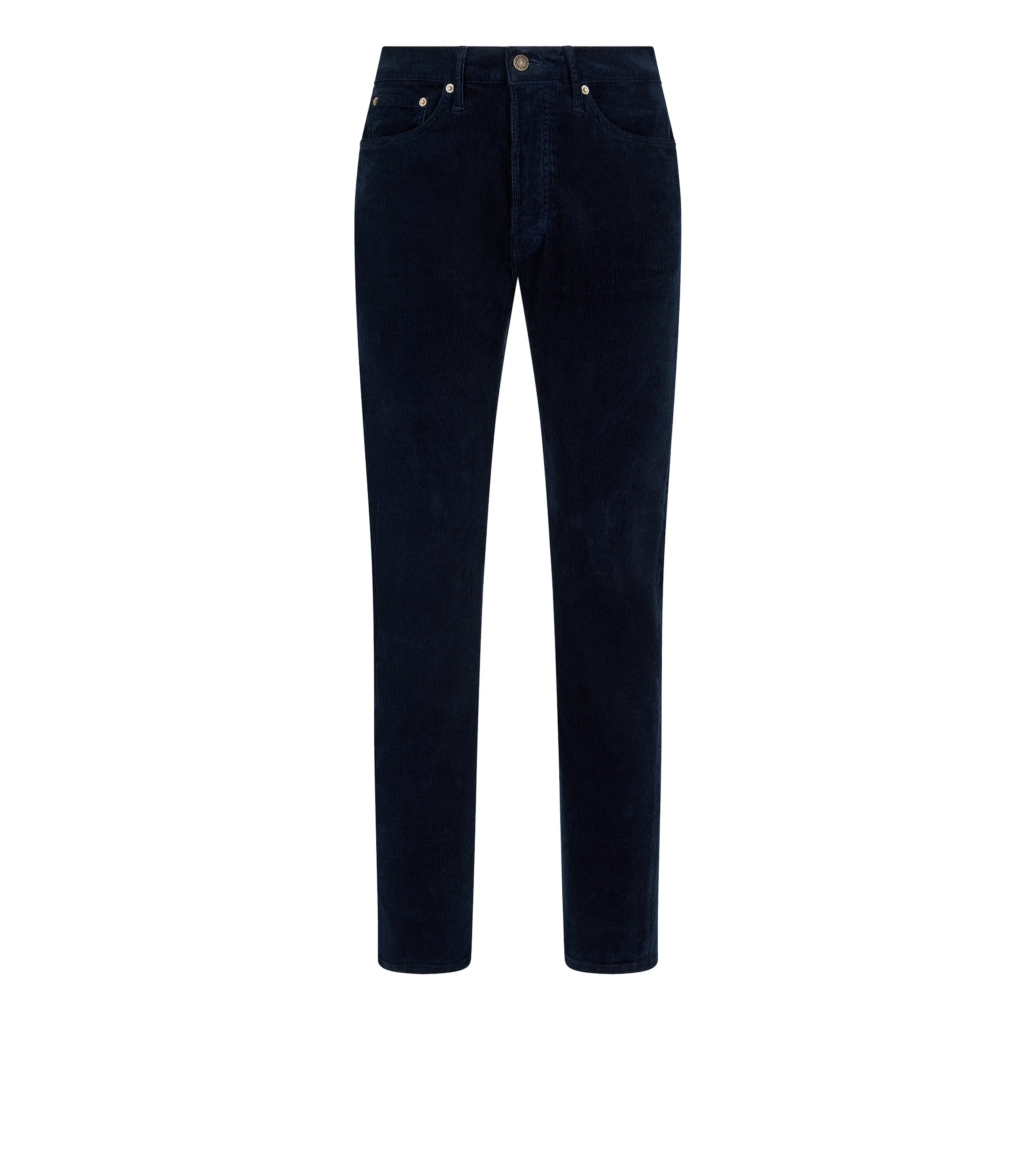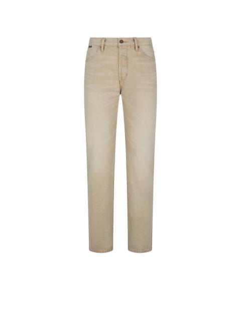 - STANDARD FIT - TOM FORD SIGNATURE TACK BUTTON CLOSURE AND RIVETS - COIN POCKET ON FRONT RIGHT WITH TOM FORD LABEL - T BARTACK ON BUTTON FLY AND HIPS - TOM FORD LEATHER BACK TAB - 18.3CM HEM - MADE IN USA - 97% COTTON 3% POLYURETHANE - MADE IN USA
