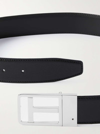 TOM FORD's belt is reversible, so you can switch sides depending on the style of your trousers. It's been crafted in Italy from full-grain leather and has a silver-tone 'T' logo buckle. Size & Fit - Fits true to size. Take your normal size - Model is shown wearing a 90 - Model measures: waist size 32 Details & Care - Black full-grain leather (Calf) - Buckle fastening