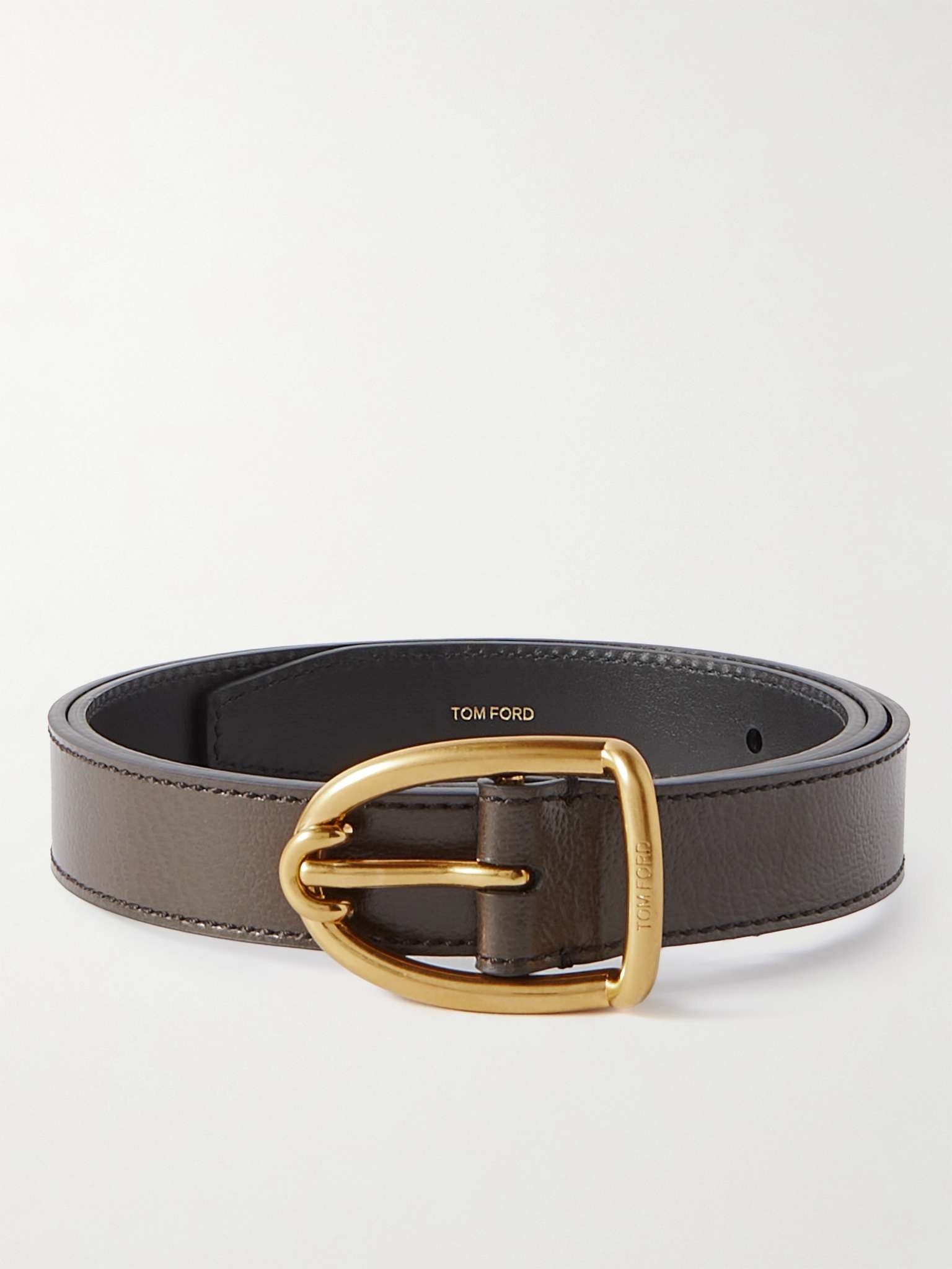 TOM FORD understands that the finishing touches are just as important as the outfit itself. This belt is made from full-grain leather with an angular gold-tone buckle, which is discreetly engraved with the label's logo. It has a slim width, so it fits through the waistbands of most jeans and trousers. Size & Fit - Fits true to size. Take your normal size - Model is shown wearing a 85 - Model measures: waist size 30 Details & Care - Brown full-grain leather - Gold-tone buckle fastening