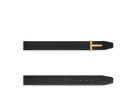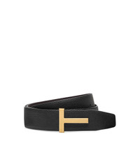 PRODUCT NO: TB178-LCL236G Defined by TOM FORD’s signature T buckle, this reversible belt is made of grain leather. Very versatile, with gold-finished brass hardware for a distinguished accent. Composition: 100% Leather Hardware: 100% Brass with Gold Galvanization Width: 40 mm Made in Italy
