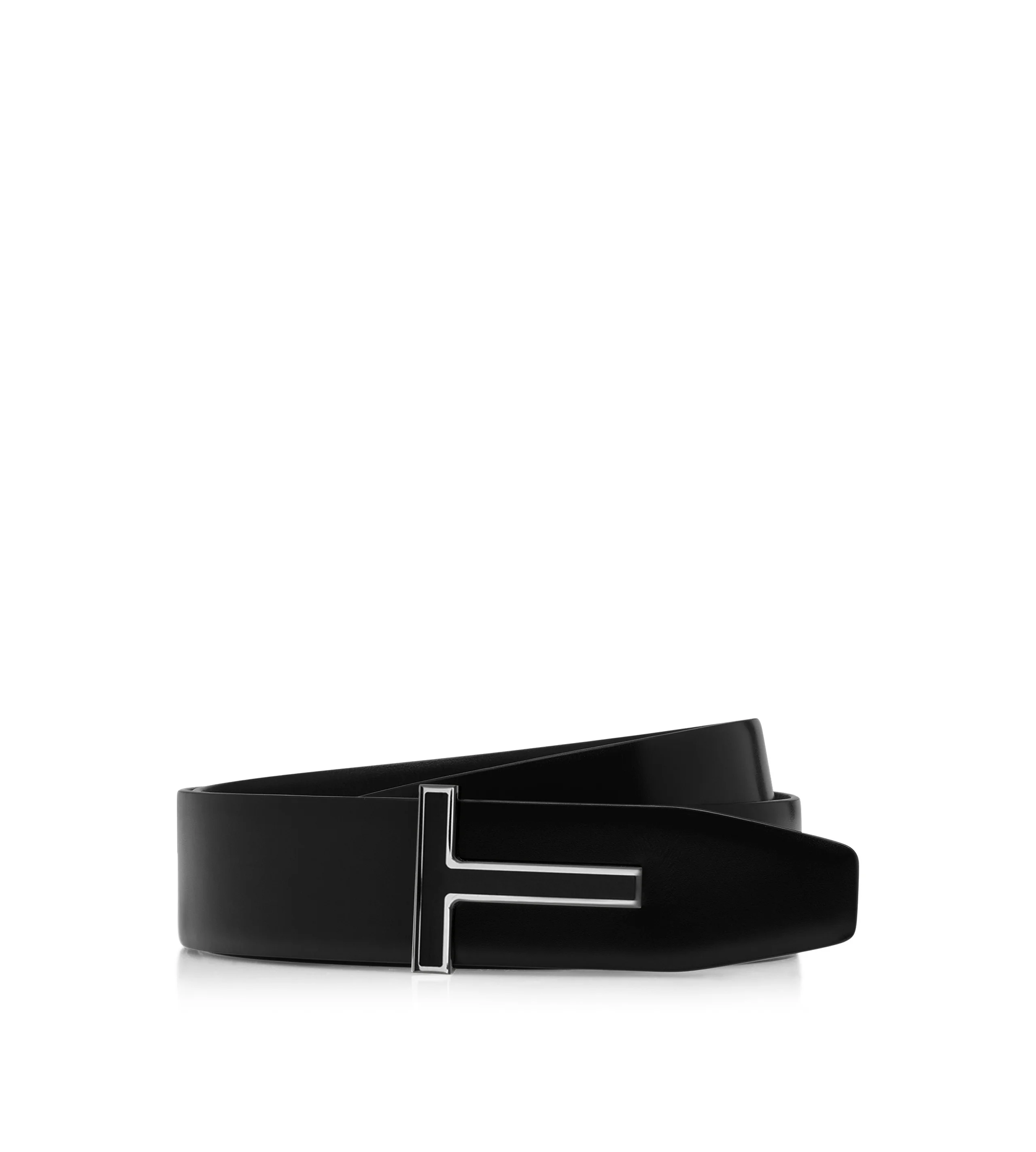 - REVERSIBLE BELT WITH ENAMEL T BUCKLE - 40MM - 100% LEATHER - HARDWARE: 100% BRASS PALLADIUM GALVANIZATION - MADE IN ITALY