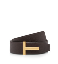 - REVERSIBLE BELT WITH T BUCKLE - 40MM - 100% LEATHER - HARDWARE: 100% BRASS GOLD GALVANIZATION - MADE IN ITALY