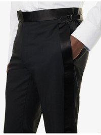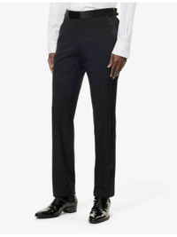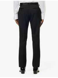 PRODUCT DETAILS - Tom Ford wool trousers - 100% wool; lining 100% cupro - Concealed button, hook-and-eye and zip-fly fastening at front - Regular fit, mid-rise, straight leg, adjustable tabs at sides, two slip pockets at front, two buttoned jetted pockets at back, unhemmed - Specialist dry clean - Made in Italy - Size UK 32: rise 10.5in / 27cm, inside leg 37in / 94.5cm, leg opening 15in / 38.5cm - Model is 6ft 2in/1.88m and wears a size UK 32 - Midweight, non-stretch Ref: R04385102
