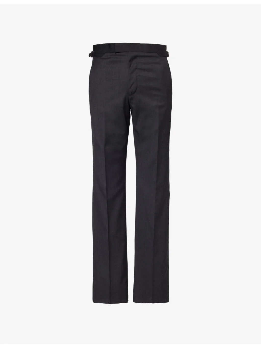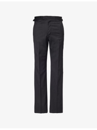 Adjustable-tab unhemmed straight-leg regular-fit wool trousers