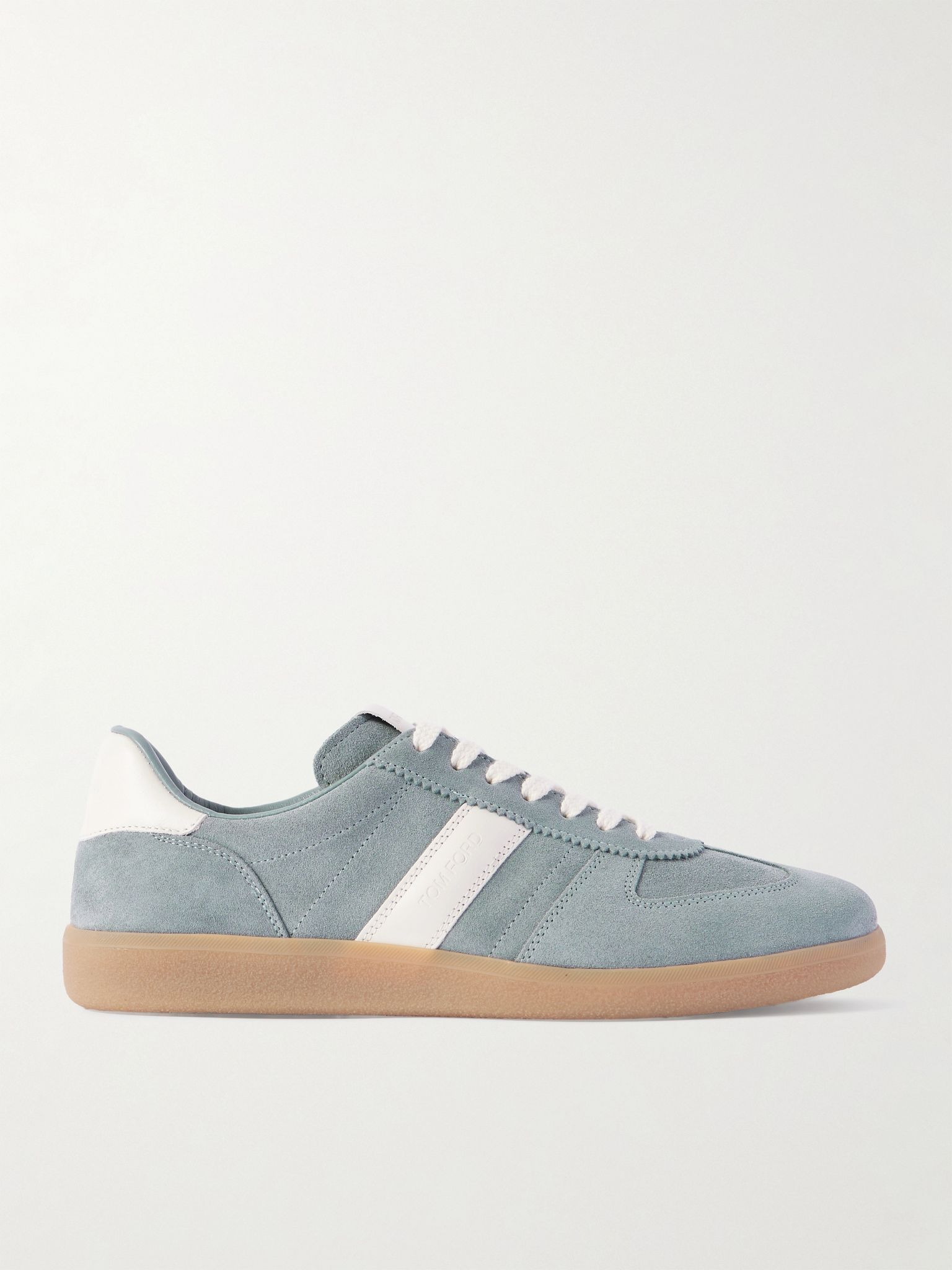 TOM FORD's 'Archer' sneakers have an understated design, which means they'll go with just about everything. Crafted in Italy from suede, they have leather trims debossed with the label's logo and rest on comfortable gummed rubber soles. Size & Fit - Fits true to size. Take your normal size - European sizing Details & Care - Blue suede and white leather (Calf) - Lace-up - Style number: J1558-LCL046N