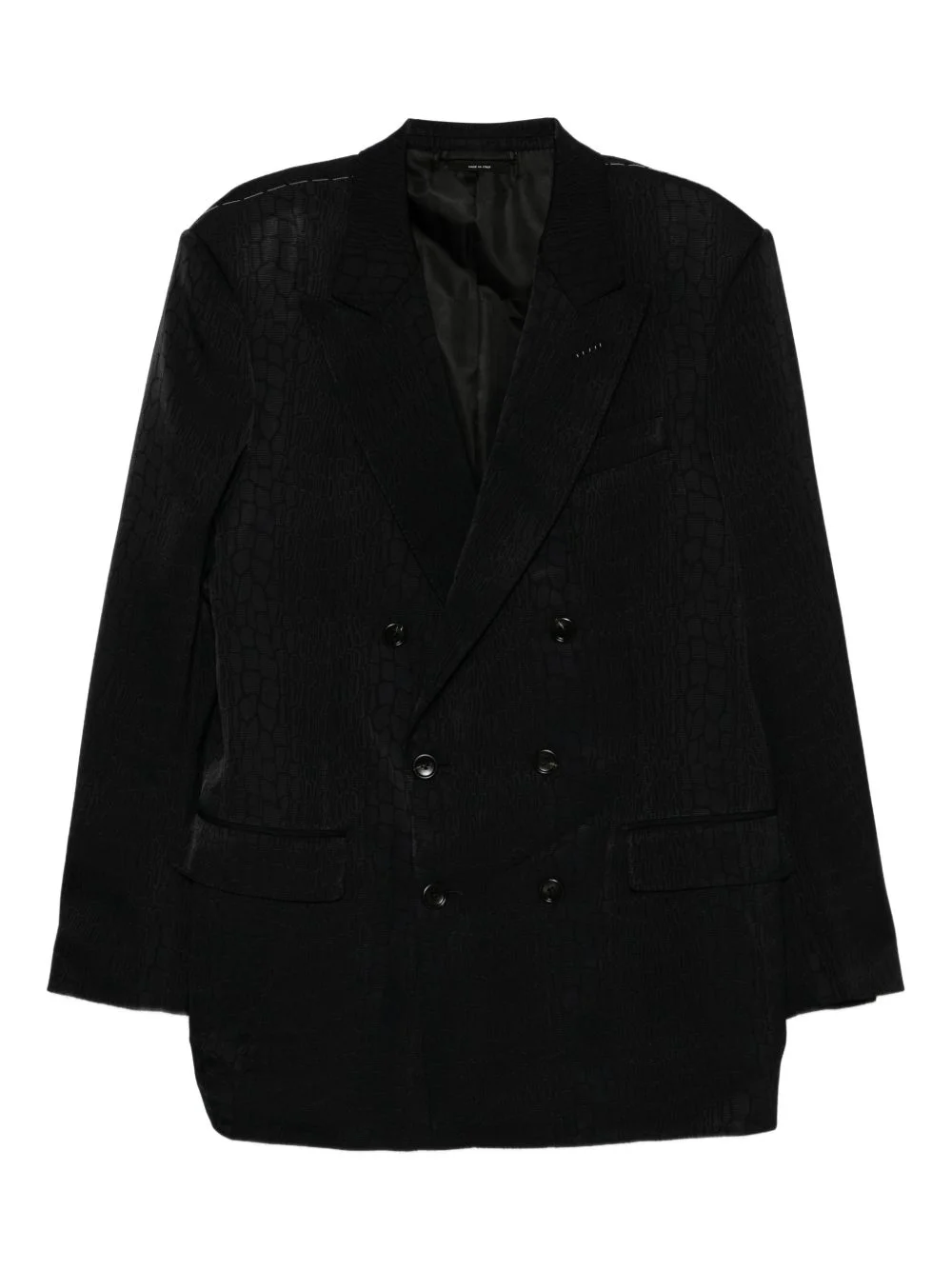 Atticus blazer Highlights - Black - Double-breasted button fastening - Chest welt pocket - Two front flap pockets - English rear vents Made in Italy Composition Outer: Viscose 66%, Wool 29%, Silk 5% Lining: Cupro 100%, Silk 41% Washing instructions Dry Clean Only