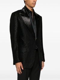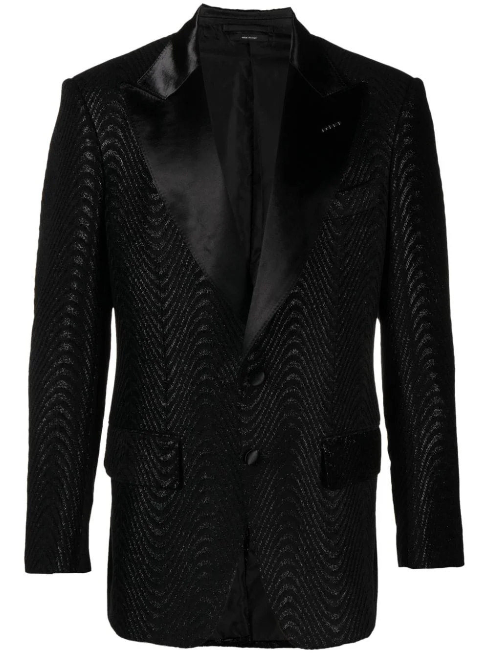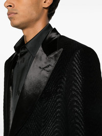 Atticus jacquard blazer Highlights - Black - Devore effect - Patterned jacquard - Contrasting lapels - Peak lapels - Long sleeves - Front button fastening - Fabric-covered buttons - Long sleeves - Buttoned cuffs - Chest welt pocket - Two front flap pockets - American rear vent - Multiple internal slip pockets - Internal logo patch - Multiple internal slip pockets - Full lining Made in Italy Composition Outer: Viscose 64%, Modal 24%, Silk 7%, Polyamide 5% Lining: Cupro 50%, Silk 50% SIZE & FIT Model measurements Height 6 ft 2 in(1.89 m) Bust/Chest 35.03 in(89 cm) Hips 38.18 in(97 cm) Waist 29.92 in(76 cm) FittingInformation Designed for a slim fit, offering a comfortable fit that sits just away from the body Made from a midweight non-stretch fabric This piece fits true to size – take your usual size Washing instructions Dry Clean Only
