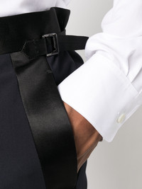 two-piece single-breasted dinner suit Renowned for its polished looks, TOM FORD introduces this midnight blue-hued single-breasted suit as part of its SS23 collection. Crafted from a cotton blend, the suit reveals the brand's penchant for exquisite tailoring with its clean lines and minimalistic design. Highlights - Midnight blue - Stretch-wool - Jacket - Silk lapels - Peak lapels - Front button fastening - Long sleeves - Buttoned cuffs - Chest welt pocket - Two front jetted pockets - Curved hem - Central rear vent - Trousers - Silk panelling - Pressed crease - Straight leg - Two rear jetted pockets Imported Composition Outer: Wool 96%, Elastane 4% Lining: Cotton 100%, Cupro 50%, Silk 50% SIZE & FIT Model measurements Height 6 ft 2 in(1.87 m) Bust/Chest 36.22 in(92 cm) Hips 37 in(94 cm) Waist 27.95 in(71 cm) FittingInformation Tailored for a slim fit, offering a comfortable fit that sits just away from the body The vented hem offers movement at the rear Made from a midweight stretch fabric, this piece offers elasticity and flexibility when worn This piece fits true to size – take your usual size Washing instructions Dry Clean Only