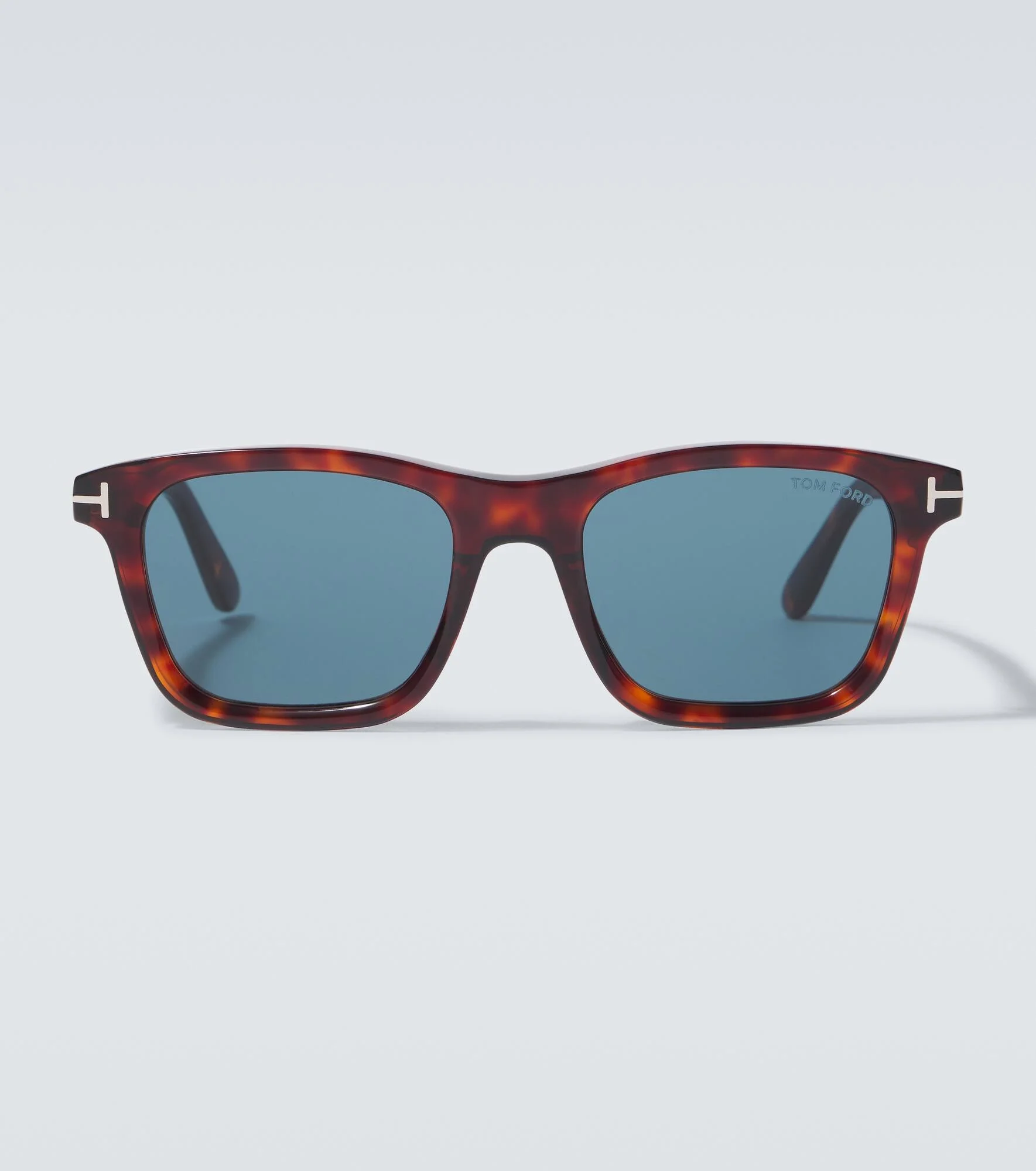 The Barron square sunglasses from Tom Ford feature the brand's signature T logo on the temples. These sunglasses also feature a subtle tortoiseshell pattern all over. Product Details - Frame material: acetate - Frame color: brown - Lens filter category 3 - Lens color: blue - Made in Italy - Includes: case and presentation box, cleaning cloth - Designer color name: Red Havana/Blue - Item number: P01006166 Size & Fit - Lens width: 54mm-2.15" - Bridge size: 20mm-0.8" - Earpiece length: 145mm-5.7"