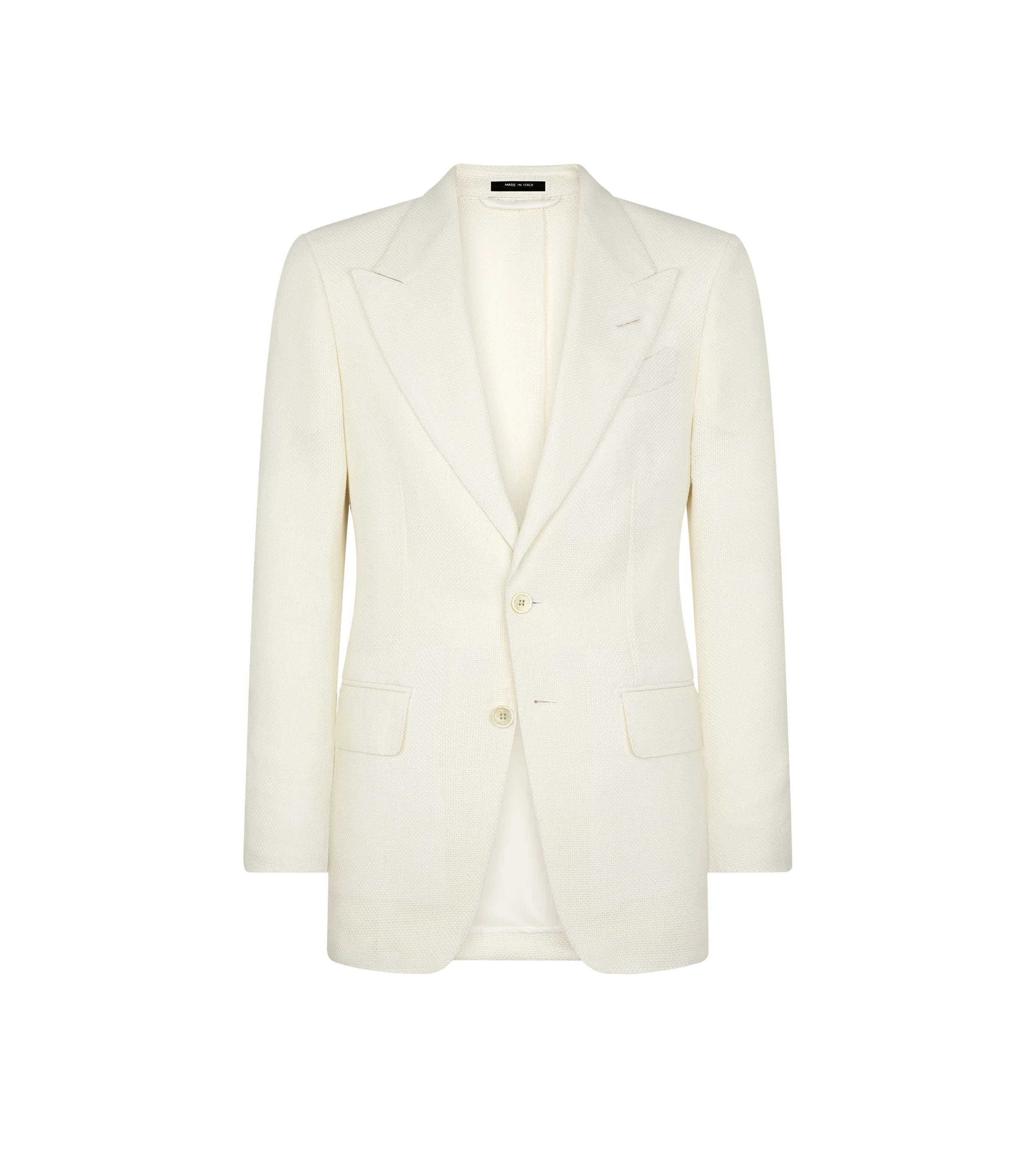 - PEAK LAPEL - SINGLE VENT - 75cm LENGTH - UNLINED - 62% WOOL 18% MOHAIR 12% SILK 8% LINEN - MADE IN ITALY