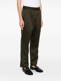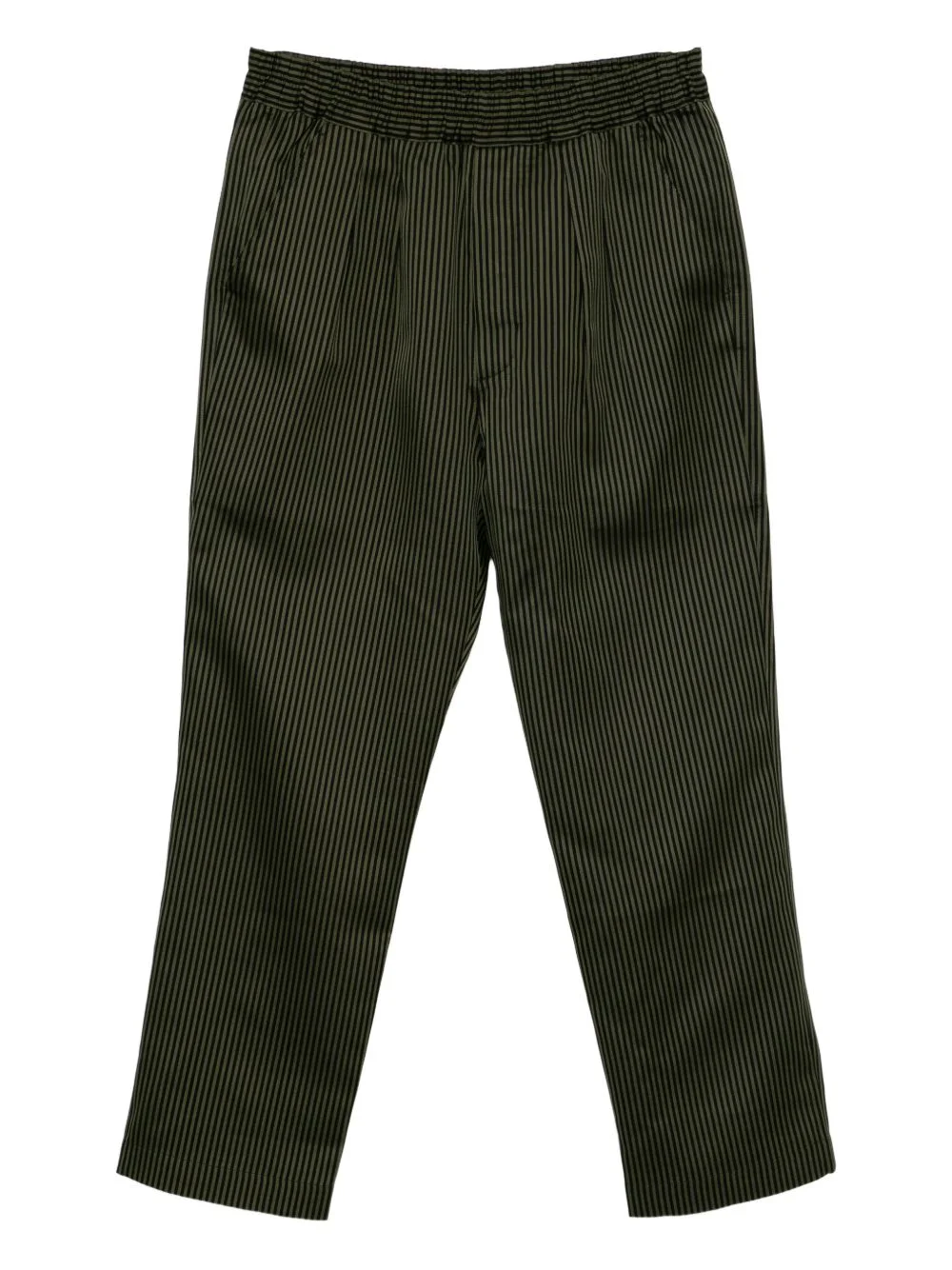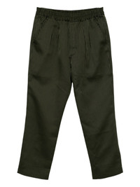 Bengal-stripe pleated trousers Highlights - Olive green - Elasticated waistband - Concealed front button fastening - Two side slash pockets - Two rear patch pockets Made In Italy Composition Cotton 74%, Silk 26% SIZE & FIT Model measurements Height 6 ft 1 in(1.86 m) Bust/Chest 33.46 in(85 cm) Hips 35.43 in(90 cm) Waist 31.1 in(79 cm) FittingInformation Designed for a tapered leg, offering a loose unrestricted fit over the leg with a closer fit towards the ankle The elasticated waist allows for a comfortable fit Made from a midweight non-stretch fabric, this piece offers minimal elasticity when worn Washing instructions Dry Clean Only