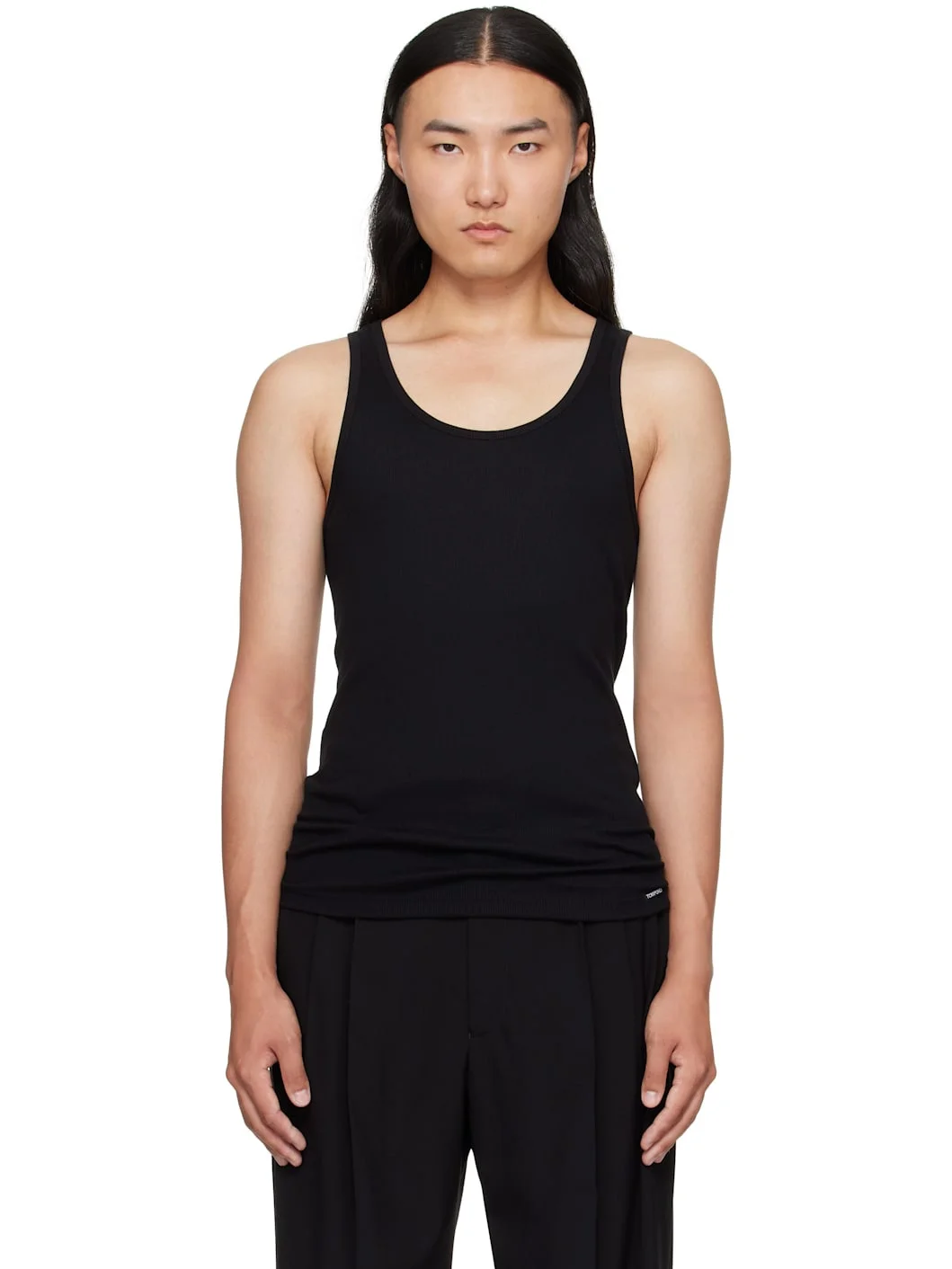 Cotton- and modal-blend ribbed jersey tank top. · Scoop neck · Logo patch at front hem · Racer back Supplier color: Black 50% cotton, 50% modal. Made in Bosnia And Herzegowina 252076M214000