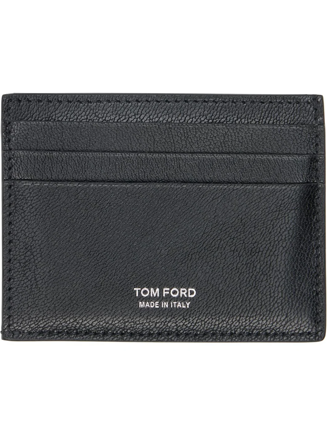 Grained goatskin card holder. · Logo embossed at face · Logo stamp at back face · Six card slots and central note slot · Grained leather and canvas lining · H3" x W4" Supplier color: Black Goatskin. Made in Italy 261076M163013