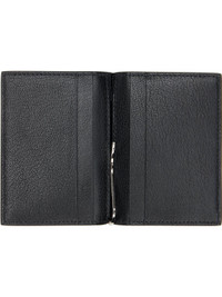 Grained goatskin bifold card holder. · Logo embossed at face · Card slot with logo stamp at back face · Four card slots and logo-etched money clip · Grained leather and canvas lining · H4" x W3" Supplier color: Black Goatskin. Made in Italy 261076M163007