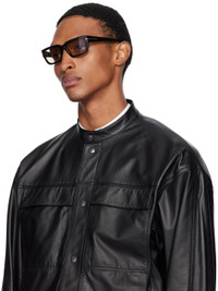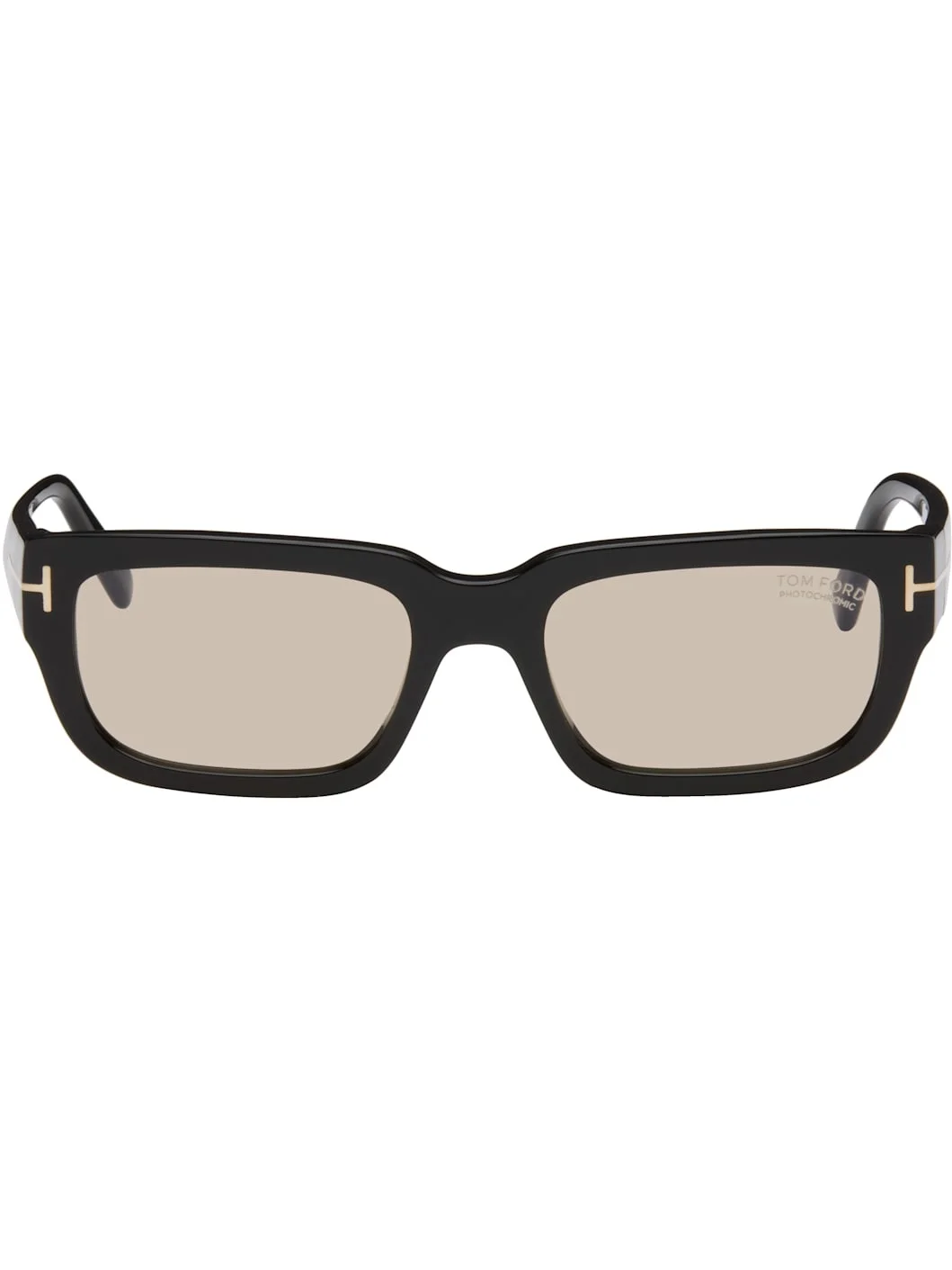 Rectangular acetate-frame sunglasses. · Brown photochromic lenses · 100% UVA/UVB protection · Logo etched at lens · Integrated nose pads · Inset logo hardware at hinges · Logo plaque at temple tips · Includes case · Size: 54.19 140 Supplier color: Black Acetate. Made in Italy 252076M134030