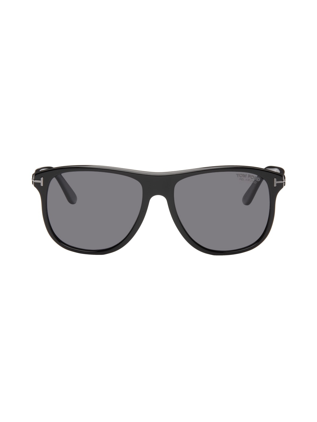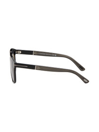 Square acetate-frame sunglasses in black. · Polarized gray lenses · Logo etched at lens · Integrated nose pads · Logo at hinges and temple tips · Exposed core wire at arms · Hardside case included · Size: 54.22 145 Supplier color: Black/Smoke