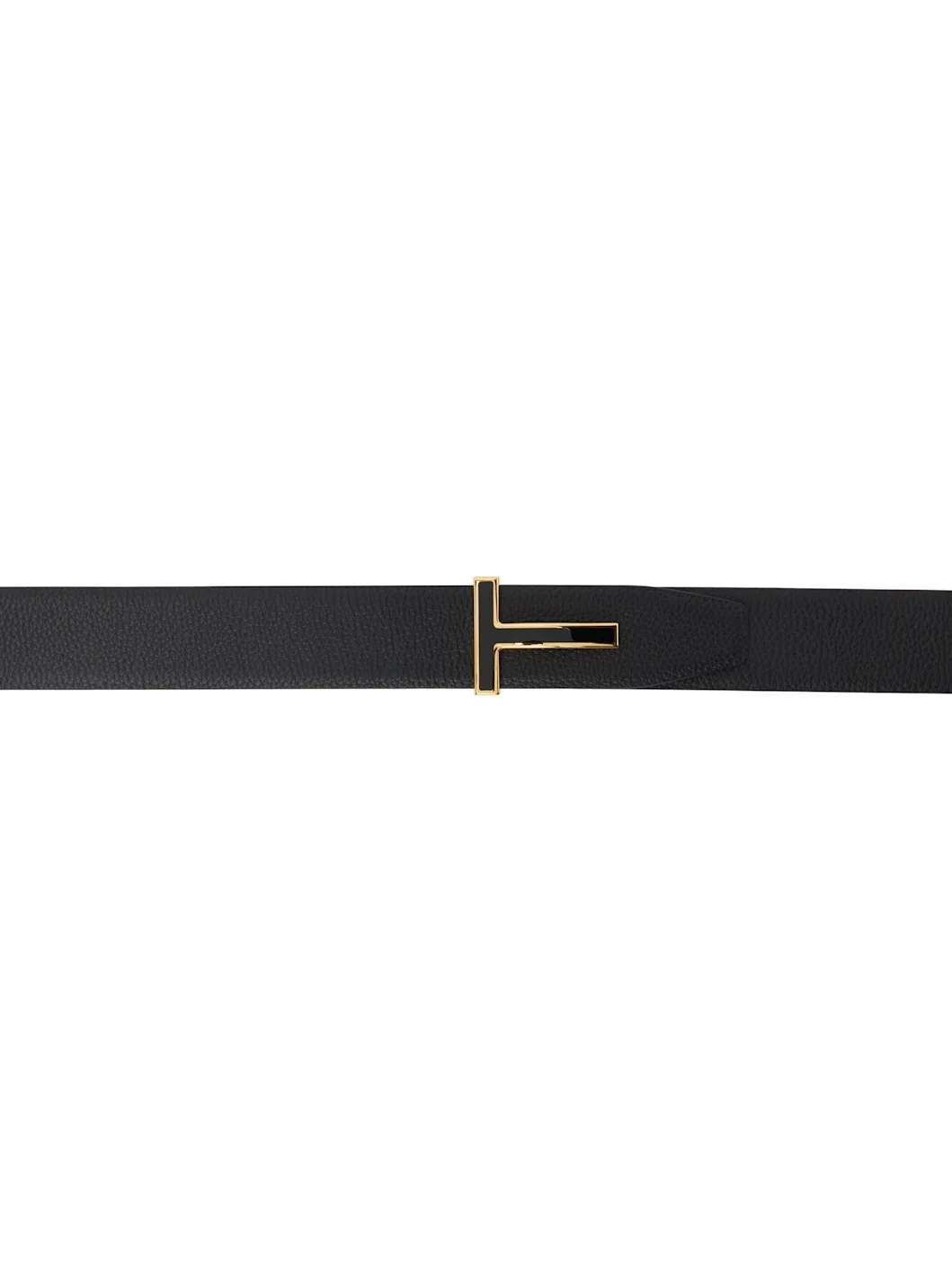 Pebble-grained calfskin belt in black. · Logo hardware at post-stud fastening · Gold-tone hardware · W1.5" Supplier color: Black Calfskin. Made in Italy 251076M131000