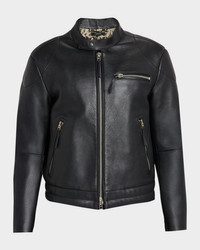 TOM FORD motoinspired biker jacket constructed from panels of supple fullgrain leather Band collar with button closure Long sleeves; zip cuffs Three zipped front pockets Hip length Slim fit Leather Leather method dry cleaning Made in Italy