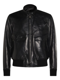 zip-front leather jacket Highlights - Black - Leather - Zip fastening - Multiple pockets - Ribbed hem - Band collar Made in Italy Composition Leather 100% Washing instructions Read Manufacturer Guidelines