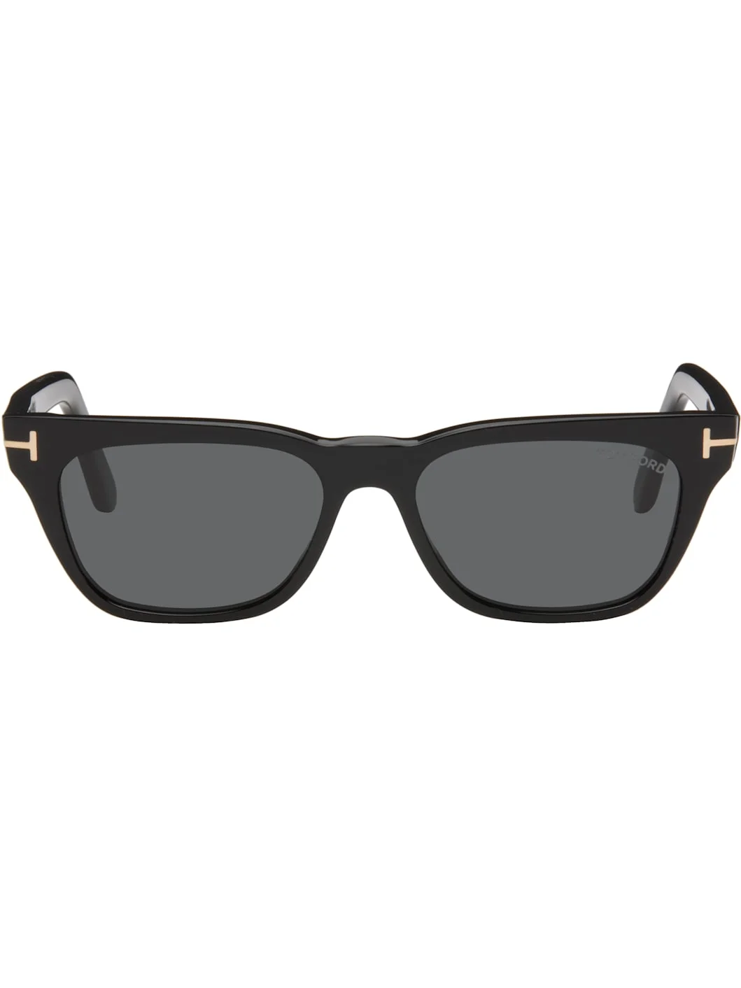 Rectangular acetate-frame sunglasses. · Gray lenses · 100% UVA/UVB protection, category 3 · Logo etched at lens · Integrated nose pads · Logo hardware at temples · Logo plaque at temple tips · Includes case · Size: 53.16 145 Supplier color: Black Acetate. Made in Italy 261076M134035