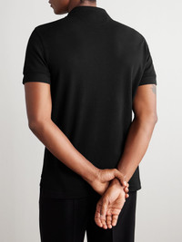 Slim-Fit Lyocell and Cotton-Blend Piqué Polo Shirt Black