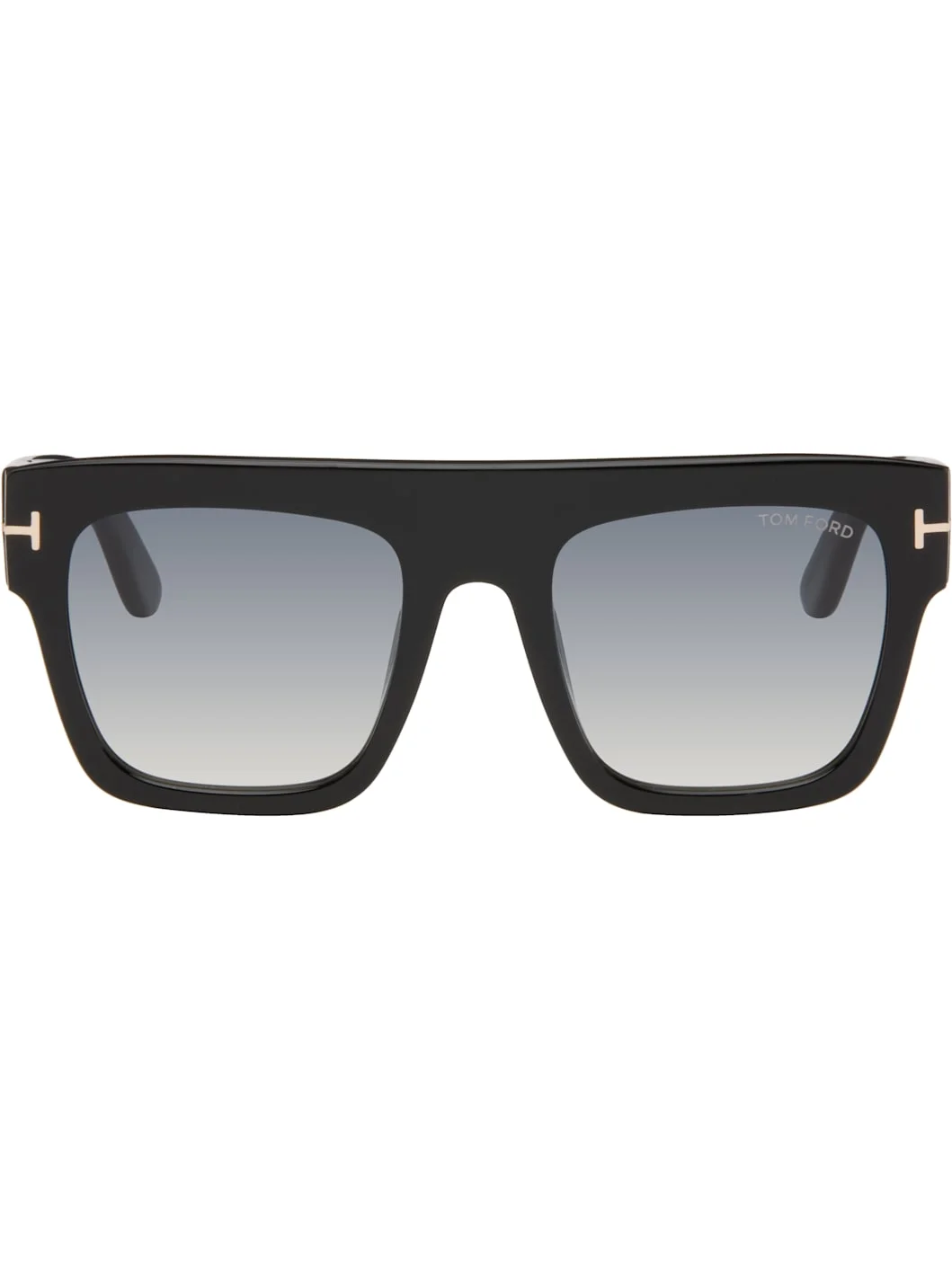 Square acetate-frame sunglasses. · Blue lenses · 100% UVA/UVB protection, category 2 · Logo etched at lens · Integrated nose pads · Logo hardware at temples · Logo plaque at temple tips · Includes case · Size: 52.21 140 Supplier color: Shiny Black Acetate. Made in Italy 261076M134089