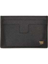 Pebble-grained calfskin card holder. · Inset logo hardware at face · Four card slots and central note slot · H2.75" x W4" Supplier color: Black Calfskin. Made in Italy 252076M163020