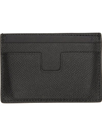 Pebble-grained calfskin card holder. · Inset logo hardware at face · Four card slots and central note slot · H2.75" x W4" Supplier color: Black Calfskin. Made in Italy 252076M163019