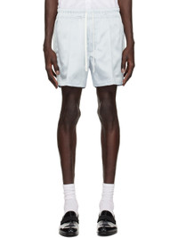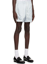 Viscose- and cotton-blend satin shorts. · Drawstring at elasticized waistband · Four-pocket styling · Button fly · Creased legs · Piping at outseams Supplier color: Ice blue/White 66% viscose, 17% cotton, 17% modal. Made in Italy 251076M193004