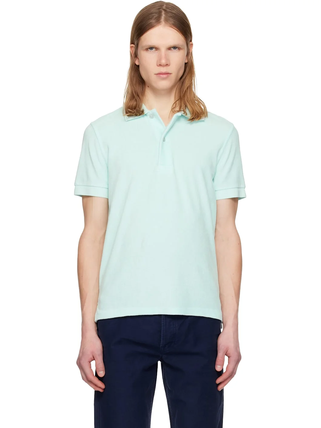 Cotton-blend terrycloth polo. · Rib-knit spread collar and cuffs · Two-button placket · Logo embroidered at front hem · Tennis-tail hem Supplier color: Blue atoll Body: 80% cotton, 20% polyamide. Trim: 100% cotton. Made in Portugal 261076M212005