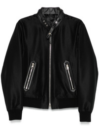 bomber jacket Highlights - Black - Front zip fastening - Long sleeves - Two side zip-fastening pockets - Ribbed cuffs and hem Made in Italy Composition Lining: Viscose 100% Outer: Wool 84%, Silk 16% SIZE & FIT Model measurements Height 6 ft 2 in(1.87 m) Bust/Chest 38.18 in(97 cm) Hips 36.61 in(93 cm) Waist 29.13 in(74 cm) FittingInformation Designed for a regular fit, allowing for a comfortably loose fit throughout the body The ribbed hem offers a close, comfortable fit Made from a midweight non-stretch fabric
