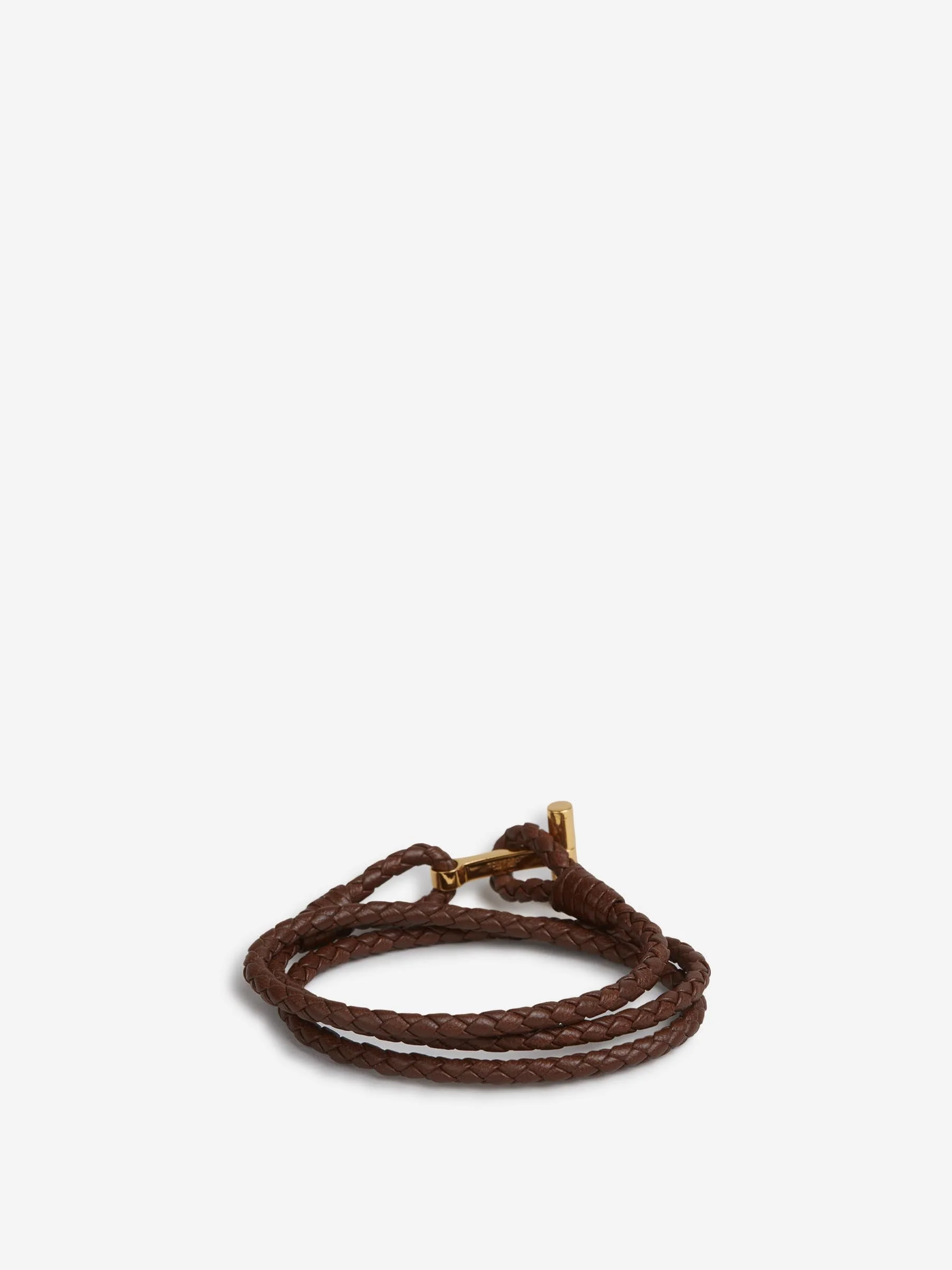 SKU: 682-001016 01 BRAND ID: JM005-ICL002G bracelet By Tom Ford • Made from braided calfskin leather • Finished with gold metallic details • Logo in metal hardware • Composition: 80% calfskin leather, 20% brass • Made in: Italy