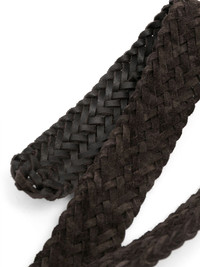 braided suede belt Highlights - Brown - Calf leather - Suede - Interwoven design - Gold-tone hardware - Debossed logo to the front - Buckle fastening - Adjustable fit Made in Italy Composition Calf Leather 100% SIZE & FIT Measurement TOTAL LENGTH 39.37 in(100 cm) WIDTH 1.18 in(3 cm)