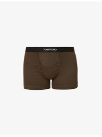 Branded-waistband fitted stretch-cotton trunks