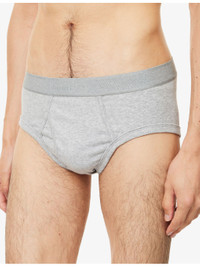 PRODUCT DETAILS - Tom Ford stretch-cotton briefs - 95% cotton, 5% elastane - Slim fit, mid-rise, branded elasticated waistband, supportive pouch at centre front, all-over melange print - Machine wash at 30°C - Model is 6ft 2in/1.88m and wears a size medium - Lightweight, stretchy - For hygiene reasons, we are unable to exchange or refund this product, unless faulty. Ref: R04466460