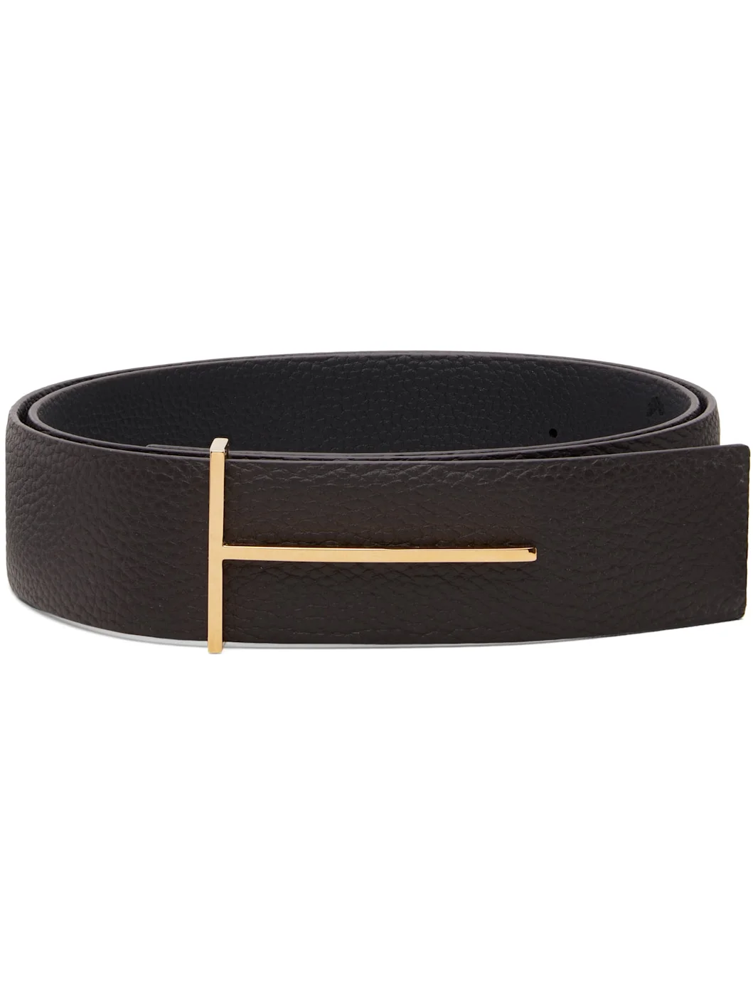Reversible grained calfskin belt. Reverse in black grained calfskin. · Logo hardware at post-stud fastening · W1.5" Supplier color: Brown/Black Calfskin. Made in Italy 261076M131011
