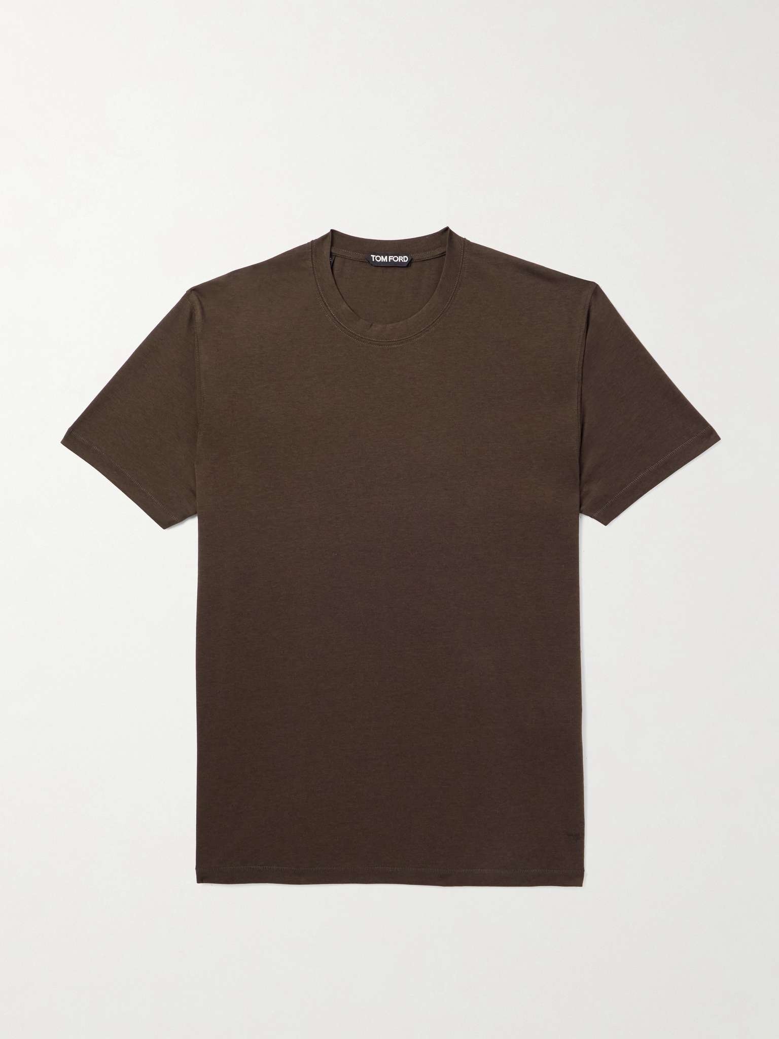 When it comes to the basics, it's worth investing in high-quality designs like TOM FORD's T-shirt - it's the kind of piece you'll wear on rotation. It's cut from lightweight Lyocell and cotton-blend for a comfortable fit and has a classic crew neck profile. Size & Fit - Fits true to size. Take your normal size - Designed for a slim fit - Lightweight, stretchy fabric - Italian sizing Details & Care - Brown Lyocell and cotton-blend jersey - 67% Lyocell, 33% cotton - Machine wash