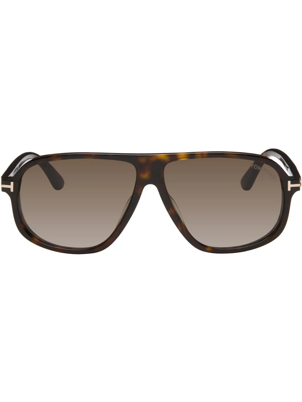 Aviator-style tortoiseshell acetate-frame sunglasses. · Gray lenses · 100% UVA/UVB protection, category 3 · Logo etched at lens · Integrated nose pads · Logo hardware at temples · Logo plaque at temple tips · Core wires · Includes case · Size: 61.12 140 Supplier color: Dark Havana Acetate, metal. Made in Italy 261076M134084