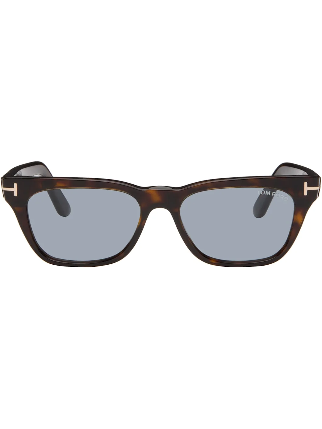 Rectangular tortoiseshell acetate-frame sunglasses. · Blue lenses · 100% UVA/UVB protection, category 2 · Logo etched at lens · Integrated nose pads · Logo hardware at temples · Logo plaque at temple tips · Includes case · Size: 53.16 145 Supplier color: Brown Acetate. Made in Italy 261076M134034