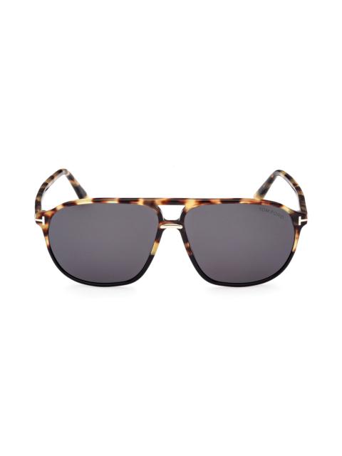 TOM FORD Bruce 61mm Navigator Sunglasses in Shiny Tortoise Black /Smoke at Nordstrom