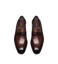 BURNISHED LEATHER AND ALLIGATOR ELKAN TWISTED BAND LOAFER