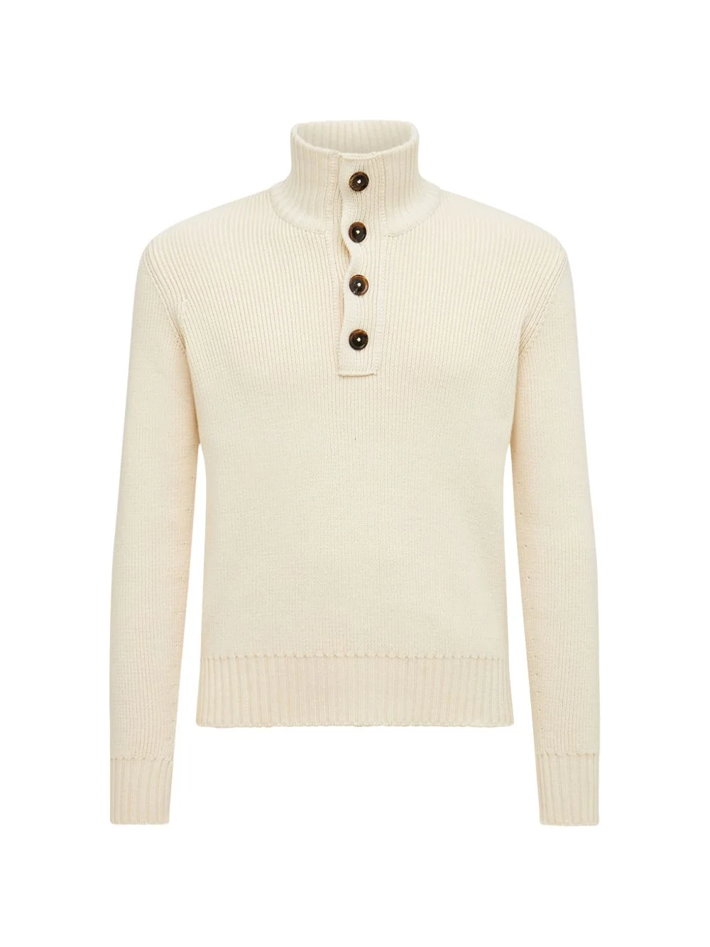 button high-neck sweater Highlights - Ivory - High neck - Button closure - Long sleeves - Ribbed knit Made in Italy Composition Wool 50%, Silk 50% Washing instructions Read Manufacturer Guidelines