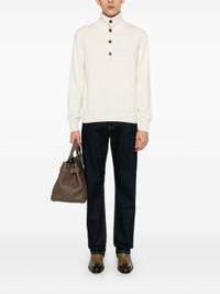 ivory white wool-cashmere blend knitted construction stand-up collar long sleeves ribbed cuffs and hem short front button fastening Size & Fit Model Measurements: Height: 1.87 m Bust/Chest: 93.0 cm Hips: 91.0 cm Waist: 74.0 cm Model wears size 50 Fabric and Care Designer Style ID: KTL004YMW047F24 Designer Colour: AW004 IVORY Composition: Cashmere 30%, Wool 70% Washing instructions: Dry Clean Only Made in Italy