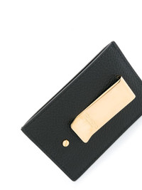 money clip card holder Highlights - Black - Lambskin - Grained texture - Money clip - Logo stamp to the front - Card slots - Logo-engraved gold-tone hardware Made in Italy Composition Lining: Lambskin 100% Outer: Bos Taurus 100%, Brass 100% SIZE & FIT Measurement LENGTH 3.93 in(10 cm) WIDTH 2.75 in(7 cm)