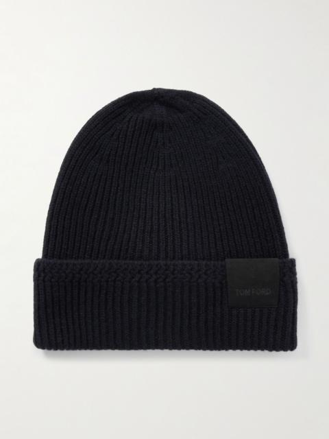 Logo-Appliquéd Ribbed Cashmere Beanie Blue