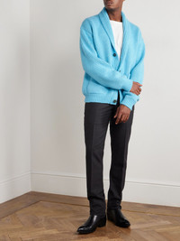 TOM FORD's cardigan has been made in Italy from pure cashmere with thick three-gauge yarns that give it a soft, warm handle. The shawl collar will layer well, while the vibrant light-blue will go nicely with denim or neutral tailoring. Size & Fit - Model wears a size larger to achieve a looser fit - Dropped shoulder seam - Weighted knit - Model is shown wearing an IT 50 - Model measures: chest 38"/ 96cm, height 6'0"/ 183cm Details & Care - Light-blue cashmere - Button fastenings - 100% cashmere; buttons: 100% horn (Buffalo) - Dry clean