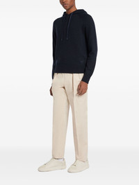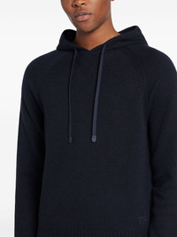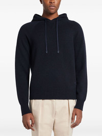 cashmere hoodie Highlights - Navy blue - Drawstring hood - Embroidered logo to the side - Fine knit - Ribbed trim Made in Italy Composition Cashmere 100%, Lambskin 100%