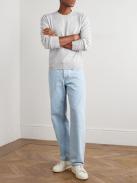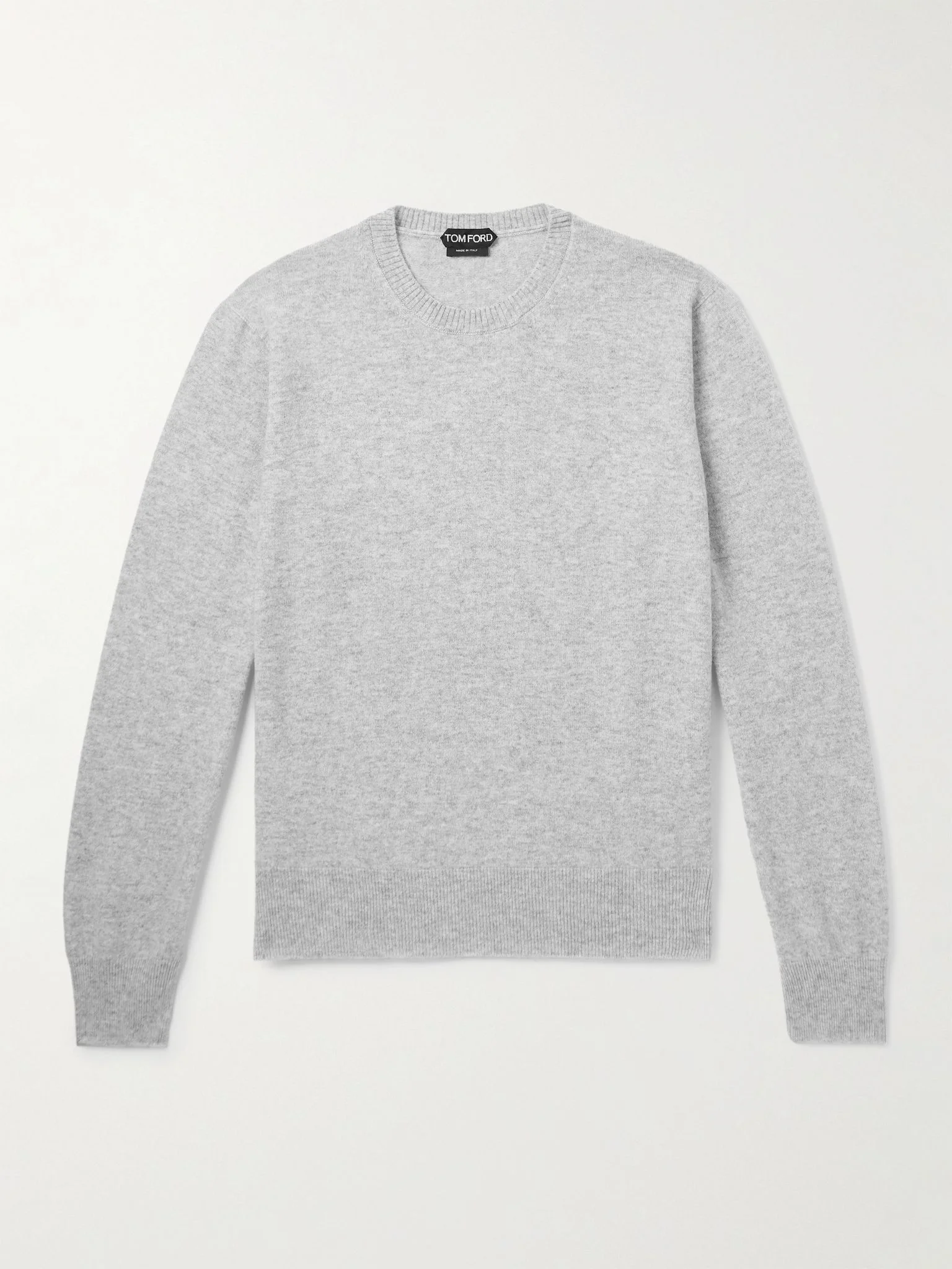 TOM FORD's sweater has been made on a circular loom, so it's entirely seamless for a more comfortable fit. Great for the transitional seasons, it's knitted from seven-gauge cashmere and ribbed at the cuffs, crewneck and hem. Size & Fit - Fits true to size. Take your normal size - Designed for a relaxed fit - Fine knit - Model is shown wearing an IT 48 - Model measures: chest 38"/ 96cm, height 6'1"/ 185cm Details & Care - Grey melange cashmere - 100% cashmere - Dry clean